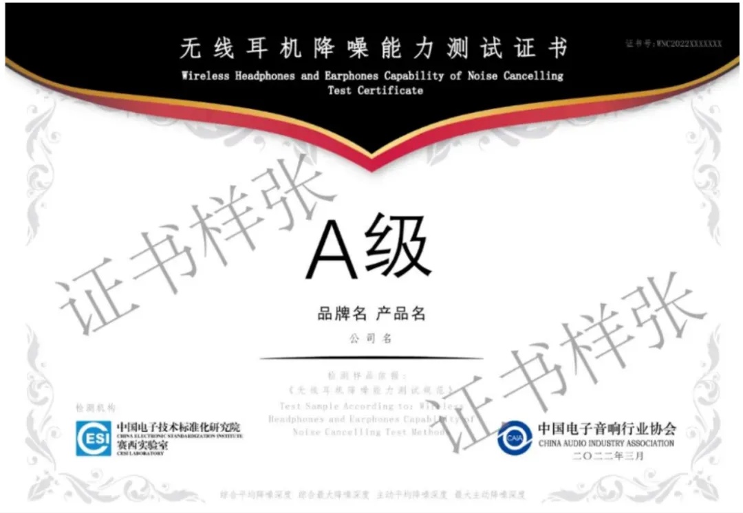 本次征集的产品将按照中音协联合电子标准院等企事业单位共同制定的T/CAIACN 006—2021《无线降噪耳机技术要求和测量方法》进行测试,产品将委托国家权威检测机构进行检测。通过测试的产品将发布产品检测证书。