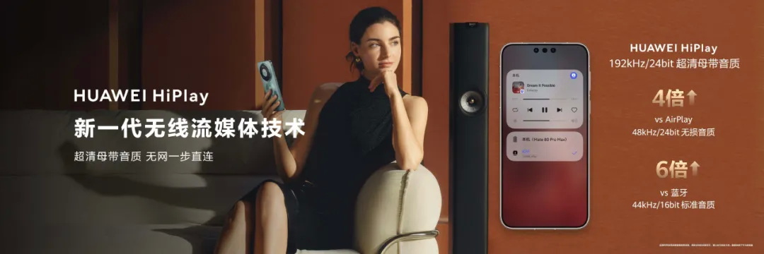 HUAWEI HiPlay 是华为新一代无线流媒体技术,支持音频媒体流投播到音箱、流媒体功放一体机等生态设备。