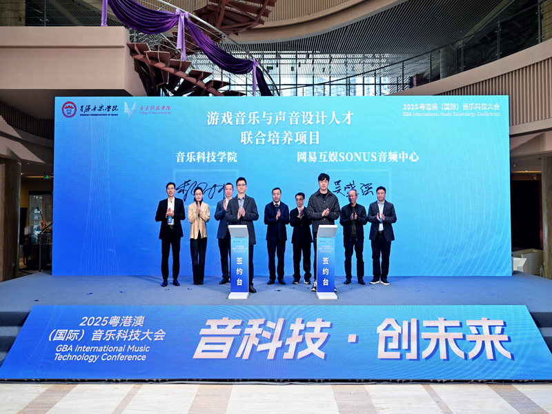 我国首个以“音乐科技”命名的二级学院——星海音乐学院音乐科技学院在开幕式上正式揭牌。大会期间举办音乐科技产学研合作基地签约、音乐科技学术报告、音乐科技教育及产业协同发展圆桌论坛。会场同步举办音乐科技成果展示会,多项“艺术+科技”融合创新成果亮相。与此同时,音乐科技设计大赛优秀作品展聚焦声音设计、数字媒体艺术、互动装置等方向,集中呈现了青年创作者在音乐科技领域的创新探索与实践。