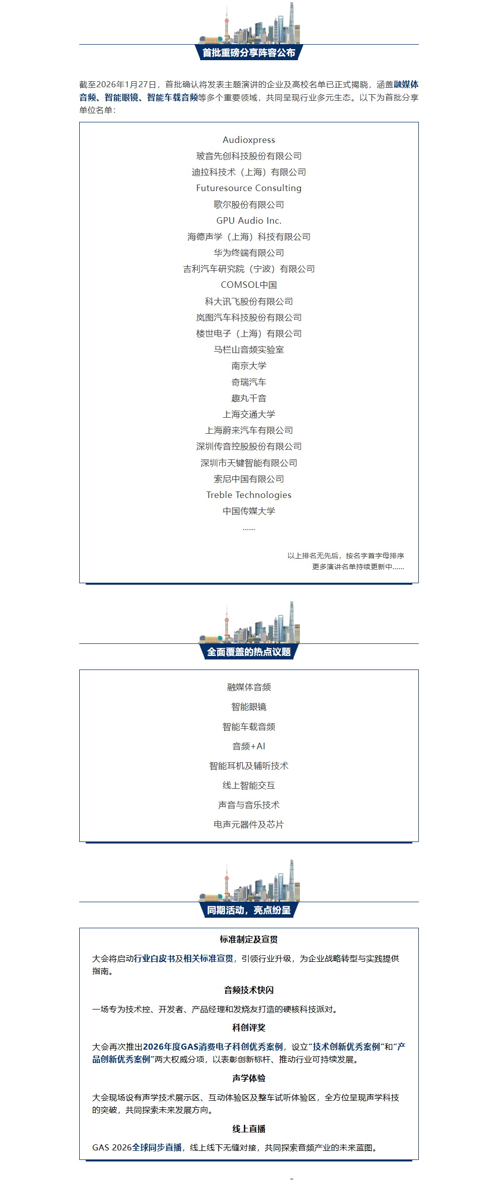 2026中国国际音频产业大会(GAS)已定档于2026年3月25日-26日在上海张江科学会堂召开。