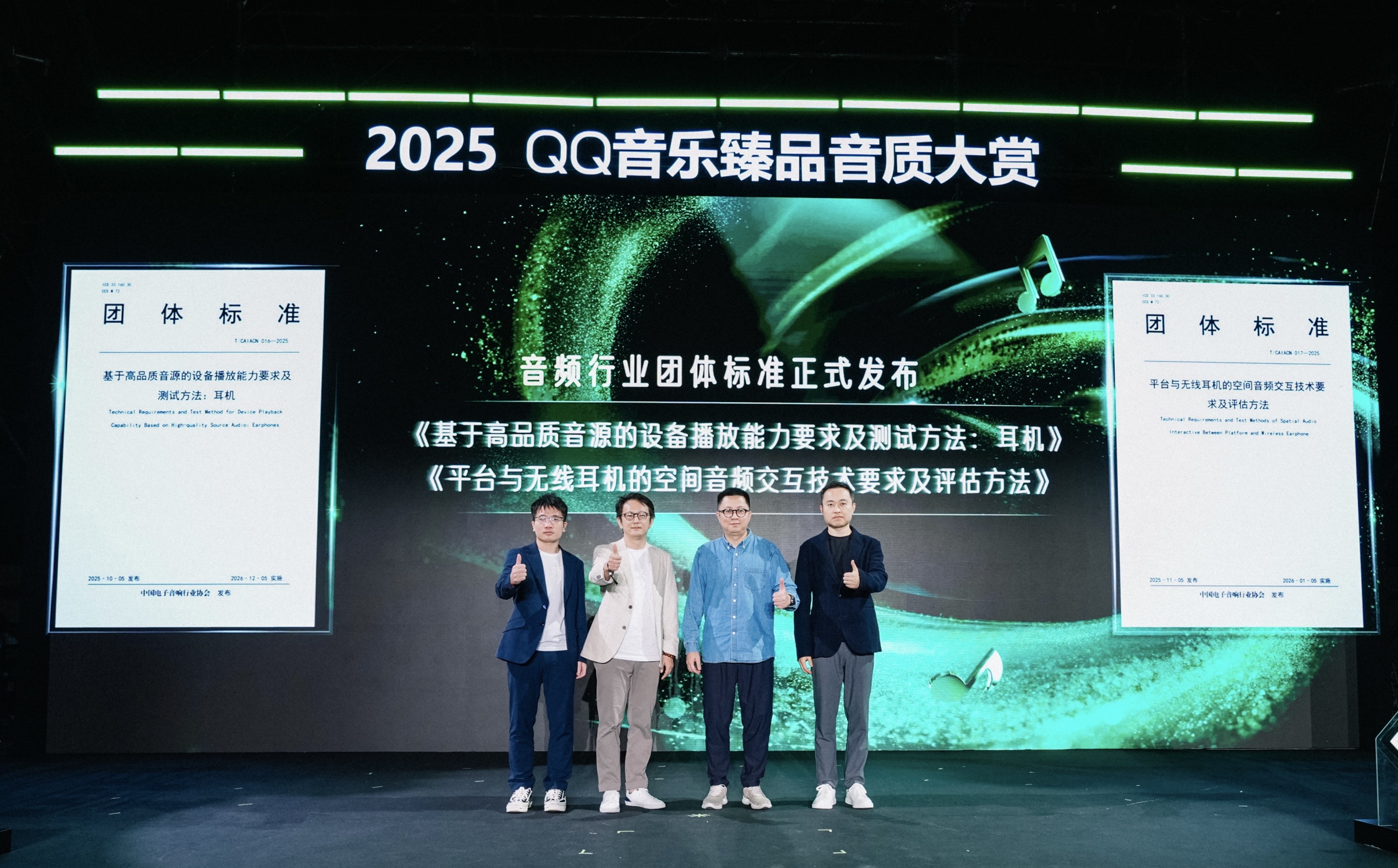 本次大赏,QQ音乐联合中国电子音响行业协会,共同发布音频行业新标准《基于高品质音源的设备播放能力要求及测试方法:耳机》《基于平台与无线耳机的空间音频交互技术要求》,让音频质量评鉴有据可依,持续推动中国音频行业品质升级。