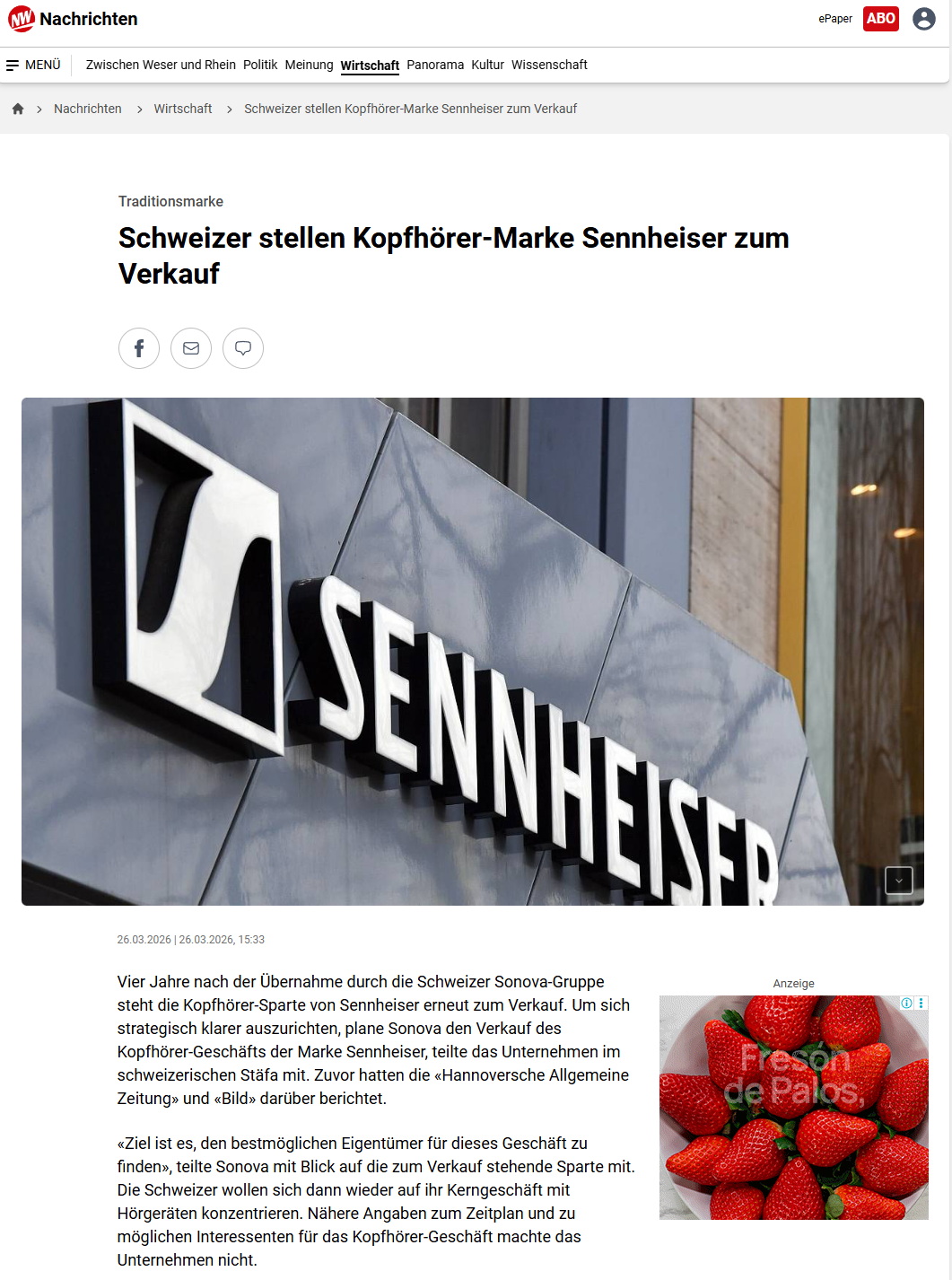 瑞士听力健康巨头索诺瓦(Sonova)日前宣布,计划出售其于2021年收购的森海塞尔(Sennheiser)消费音频业务(即耳机和Soundbar等产品线)。这一战略转向,距离该交易完成仅4年,标志着索诺瓦在新任首席执行官埃里克·伯纳德(Eric Bernard)的领导下,正重新聚焦助听器、人工耳蜗等核心医疗业务。截至发稿,尚无明确潜在买家“浮”出水面。