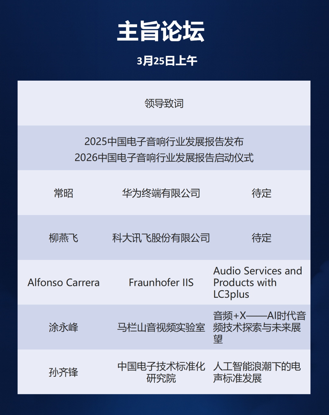 1场主论坛+9场分论坛”的架构,全面解构音频产业未来生态。议题矩阵深度聚焦电子产业最前沿,覆盖